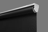本製品では、新開発の機構により、コンパクトで高性能なシンクロナスモーターをパイプ内に収納し、スクリーン幅と機械幅がほぼ同一のサイズを実現した。今回は有効幅一杯までスクリーン生地に活用するために、あえてアルミケースを備えない仕様とした。