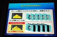 「バックライトスキャン」は、各映像コマ間でバックライトの一部を順次消灯させることで、残像を低減する技術。これによりホールド時間がさらに約30%短縮する。