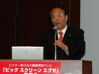 本日都内で開催された記者発表会には同社専務取締役の土屋氏が出席し、プロジェクションテレビの国内展開について語った。
