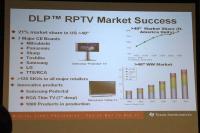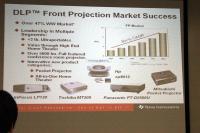 最後に同氏は日本市場での状況について説明。フロントプロジェクター市場においてDLPのシェアは27.2%と低い数字を示している。シェア拡大のためにはHTPS-LCD製品との競争に勝つことが必要であるとし、マーケティング活動の強化、コスト削減、キーパフォーマンスの向上などを行っていくと意気込みを語った。