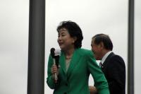 場所は秋葉原駅前のダイビル横。ちょうど今日がつくばエクスプレス開業の日ということもあり、秋葉原駅周辺には人手がいつも以上に多く、演説には約2,000名の観衆が集まった。