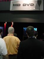 東芝はコンベンションセンターの自社ブース内で、HD DVDプレーヤーの試作機HD-XA1のデモを行った。来場者を驚かせたのは、デモに使われた映画ソフトのタイトルの多さ。パラマウント、ユニバーサル、ワーナー、ニューライン、HBO各社の提供作を総動員していた感がある。