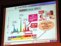 バックライトには、新開発の「ハイブリッド・バックライト・システム」を採用。従来の4波長バックライトに赤色LEDによる“ピュアレッド”を加えることで、色再現範囲をNTSC比 95%に拡大した。