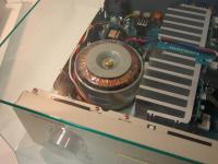もう1モデルはピュア2chのインテグレーテッドアンプ PM8001。こちらも11月発売予定で予価\84,000。回路構成はほとんどPM-15S1と同等というから、一部パーツは異なるとはいえ、約半額のお買い得モデルといえる。シャーシ内部が見える展示となっており、新たなフィーチャーとしては、トロイダルトランスに3mm厚のショートリングが被せてあった。これにより音質向上に寄与しているという。