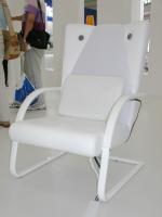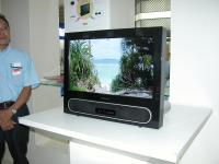 「DVDテレビシアターシステム」と名付けられた製品は、32インチの液晶テレビにDVDプレーヤー、AVアンプ、スピーカーを一体化したオールマイティーなホームシアターコンポーネント。フルデジタルアンプやフロントサラウンドの機能も搭載されており、これ一台で快適なシアター環境が実現できるというものだ。ブース解説員に商品化のプランをたずねてみたところ、「この手の商品については特に欧米地域での反応が良く、最初はこれらの市場のリリースを検討していきたい」とのこと。