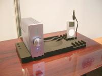 フライングモールは、10月1日に発売を予定している小型のデジタルプリメインアンプ「CA-S3」(70,000円・税込)を展示。ポータブルオーディオやPCとの組み合わせをデモ展示により提案している。本機では30W×2ch(4Ω)の定格出力を実現。外形寸法も130W×54H×182Dmm(最大)とコンパクトサイズを実現している。スピーカー端子は真鍮削りだし金メッキの砲弾型ポストピン採用により、スピーカーケーブルとの接触面積の極大化と接触抵抗の極小化を実現している。ボディーやボリュームコントロール部には非磁性体アルミ無垢を採用し高級感と高剛性・高振性をあわせて実現している。なお、本機に採用されている同社製のオーディオ用電源内蔵デジタルアンプ基板「APS-S30a」をはじめとする新製品も一堂に展示されている。同社は今後ステレオ対応のデジタルアンプ基板を積極的に開発していくとのことだ。