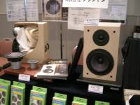 村田製作所はオリジナルの球形スピーカーの製品群を多数展示。1つのφ80mm半球状圧電セラミックスのスコーカーと3つのφ100mm平板ハニカムダイナミック型ウーファーによる2ウェイ構成とした新製品「ES301」の展示と試聴イベントを行っている。ブースの一角では台形のエンクロージャを採用した、スピーカーのプロトタイプも参考出品する。こちらはウーファー部に10cmフルレンジユニット、天面に球形トゥイーター「ES103A/B」と同型のものを採用している。今回のイベントでは試聴も行い「お客様の反応をみながら製品化を検討したい」とのこと。