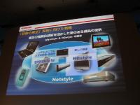 藤井氏はさらに「差異化した製品」をユーザーに提案することが、東芝のブランドが業界で勝ち抜くためのキーポイントであると指摘。差異化のためには同社の商品が「3つのスタイル」として、「ハードディスクを搭載する“gigastyle”」「ハイビジョン対応を実現する“HD style」「ネットワーク環境を活かしていく“Netstyle”」を併せた提案をユーザーに行っていくことが、デジタルAVのリーディングカンパニーとなるための大事な戦略であると説明した。