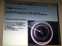 プロジェクションヘッド部は、筐体にアルミ押し出し素材を採用。新開発のボディーシャーシと独自の排気構造の採用により、27dBの静音性を実現している。レンズはフォーカス性能を向上させた新開発の電動ズームレンズを採用。レンズの絞りを矩形開口にした「ダイナミックスクエアアパーチャー」機構を搭載し、ズームポジションによって絞りを最適化することにより、テレからワイドまで同じレベルの高コントラストを実現している。投射距離は100インチの場合、「スタンダードズームレンズ」が約3.29m〜4.64m、「ロングズームレンズ」が4.34〜8.30m。