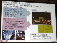 シャープ(株)は、コントラスト比 1,000,000対1を実現した“ASV液晶プレミアム”『メガコントラスト液晶』を開発したと発表。本日行われた記者発表会では試作の37V型フルHDディスプレイを初公開した。
