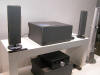 ブースの一角では2.1chスピーカーシステム「Xa-80」のデモも行っている。本機は11月に発売を控える新製品。また、超磁歪パネルを応用した2.1chスピーカーシステムも展示。今回の試作機には3mmのアクリルパネルを振動板として採用している。振動力が大きいという超磁歪素子の特性を振動板に有効に伝達するため、同社は新たに超磁歪エキサイタを開発し、アクリルパネルを振動板に用いたプロトタイプで再生デモを行っている。この技術を用いることにより、独特のライブ感に満ちたサウンドが実現できるという。