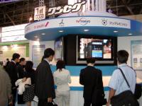 中でも最も注目を集めているのが、携帯電話や移動体向けの地上デジタル放送「ワンセグ」の体験コーナー。地上デジタル放送は1つのチャンネルが13のセグメントに分かれており、そのうち1セグメント分が携帯・移動体向けの放送に割り当てられている。「ワンセグ」という名称は、この「1セグメント」を略したもので、 2006年4月1日から放送が開始される。