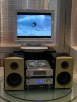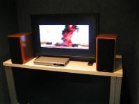 パソコン関連機器のメーカーが本腰を入れてオーディオへ参入してくるか、といった展示がちらほら見られたのも興味深い。まず目についたのは、WINブランドのミニコンポNE-2520だ。これは自作パソコンのシャーシや関連機器などを取り扱うダイナコネクティブ社のオーディオブランドで、瀟洒なトップローディングのDVDプレーヤーとチューナーアンプ、スピーカーから成る3点セットである。スピーカーにはピアノと同じ7層の鏡面仕上げが施されているというから本格的だ。