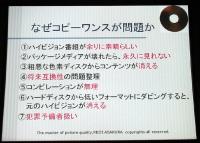 コピープロテクトについての話題では、松下電器産業の小塚氏から詳しい説明が行われた。ブルーレイでは、AACSに加えてパソコンのウィルス対策ソフトのように怪しげな動作をするプログラムに対して自動的に撃退するような仕組みが組み込まれているという。