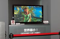 松下電器産業のブースには、CEATECで展示された65V型のフルHDプラズマテレビ「TH-65PX500」が登場。11月1日に発売を控える“VIERA”シリーズの新製品だ。また同時に注目を浴びるのが、同様にCEATECで見ることができた参考出品の50V型フルHDプラズマパネル。「世界最小のフルHDパネル」として、その技術力をアピールする。こちらのサイズは「今のところ製品化の具体的な予定はない」(説明員)とのことだ。