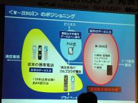 八剱氏は音声・データ双方に用意した定額制の料金プランによる優位性を強調し、本機を「ケータイの機動性とPCの高性能を併せ持つ新世代ツール」であるとアピールした。