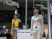 パナソニックは今月発表したSDオーディオプレーヤー「D-snap」と、SDオーディオシステム「D-dock」による、新しいデジタルオーディオスタイルの提案に力をいれた展示内容だ。デジタルカメラLUMIXシリーズの展示では、最新モデルのラインナップを紹介するほか、SDカードムービーの「SDR-S100」の展示にも注目が集まる。SDカードムービーのコンセプトモデルとして、ハイビジョン録画への対応を想定したプロトタイプも展示されている。他にも電力線を使ったPLC(Power Line Communication:電力線搬送通信)の技術をベースに構築した家庭内ネットワークによる、HD映像伝送、IP電話、データ伝送のデモンストレーションも行っている。