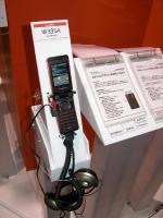 KDDIのブースで注目を集めていたのは、三洋電機が24日に正式発表した、上デジタル放送の携帯・移動体向けサービス「ワンセグ」に対応するチューナー搭載の携帯電話「W33SA」の展示だ。デモ機による体験展示では試験放送の受信を行い、高精細な映像を再生していた。また、同じく三洋電機から発売される3Dサラウンド機能を搭載した携帯電話「W31SAII」も注目を浴びていた。