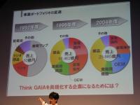 また今後「Think GAIA」を具現化する企業になるための方針として、「2004年次点で当社の強みに成長していた部品事業をさらに強化する。特に今回発表した二次電池など、当社のナンバーワンの分野の独自技術を活かして企業ビジョンを実現したい」と意気込みを語った。さらに野中氏は「“第三の創業”を実現するため、今後はカンパニー制を取り払って企業内の技術交換をより闊達にしていきたい。若い社員の声なども取り入れながら、自由な発想に基づいたもの作りを大切にしていく」と目標を語った。
