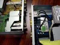 その基板上に二台の500GB HDDを搭載。前モデルでも二台分のスペースが確保されていたことを考えると、計画通りの正統な進化といえそうだ。前モデルと同様にHDDはゴム製インシュレーターで本体に固定されている。本機では500GB HDD固有の振動パターンを解析して、ゴムの柔らかさを再調整して低振動&静音化が図られている。