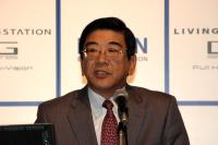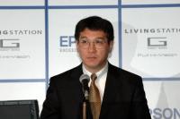 本日、東京都内で本機の記者発表会が行われた。冒頭、セイコーエプソン(株)代表取締役副社長の丹羽憲夫氏が登壇。丹羽氏は「現在、弊社は中期経営計画『SE07』を遂行しているところで、i1の『Paper』分野、i2の『screen』分野、i3の『grass』分野に経営リソースを集中させているところだ。この3つは、決してバラバラに取り組むものではなく、関連テクノロジーとして捉え、画像と映像の融合領域での競争力を高めることを目標にしている」と説明。画像と映像の融合の具体例として、今回のGシリーズが登載したPictBridge機能を挙げ、「弊社のプリンター事業は50%超のシェアを持っている。すでに皆さんがエプソンのプリンターをお持ちのわけで、これを有効に活用する」と述べた。