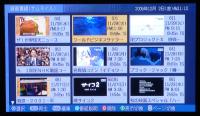 録画した番組の再生は、リモコンの「録画番組」ボタンから呼び出す。録画した番組は画面全体を使って3×3マスで表示され、選ぶだけで再生できる。番組タイトルはもちろんのこと、録画日時や録画モードも表示され、未視聴の番組にはNEWマークが付くなど探しやすさはなかなかだ。また、選択した番組は音声付きで再生が始まるため内容もすぐに確認できる。大量の番組を録り溜めている場合には、緑ボタンを使ってタイトルだけの一覧に切り換えると良いだろう。