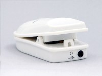 本機は、MP3、WMA形式の再生に対応したデジタルオーディオプレーヤーでメモリ容量は128MB。本体サイズは親指程度で、クリップのように好きなところに挟んで使用することが可能だ。