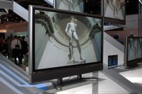 ブース入り口には最上位の液晶AQUOS 2モデルを展示。フルHDの解像度を誇る65インチの「LC-65D90U」と45インチの「LC-45GD7U」だ。また、ブース中程には日本でも公開済みの“メガコントラスト液晶”の体験ルームを設置。見る角度により2種類の映像を表示可能な“Two-Way Viewing Angle LCD”も大きな注目を集めている。