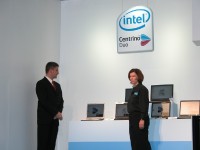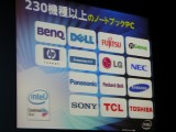 今回のセミナーではノートPCを使って、ワンコアモデルとツーコアモデルによるパフォーマンス比較を行い、Centrino Duoにおける大きな性能の進化をアピールした。マクドナルド氏によれば現在、230機種以上のノートPCで搭載が様々なパートナーによって進められているという。
