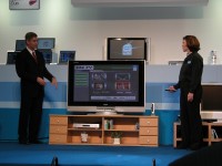 引き続いて「Viivテクノロジー」の説明がマクドナルド氏によって行われた。「デジタルホームに大きな変革をもたらす技術」と語るマクドナルド氏は、本プラットフォームによってブロードバンドとブロードキャストの融合が起こり、PCと家電の相互接続性もますます高まり、高品位なコンテンツのアベイラビリティが加速するだろうとした。また、本技術で実現されるリモコンによる快適な操作性、素早い電源のON/OFF機能などが実機によって披露されたほか、1台のViiv搭載デスクトップPCとブロードバンド環境により、インターネットゲームとハイビジョン映像を同時に楽しむマルチタスク処理のデモも行われた。マクドナルド氏は「今後ワールドワイドでViiv搭載PCをリリースし、年末までに250機種以上に増やしていく」と今後の予定を明らかにした。