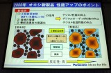 国内の乾電池マーケティング戦略については、松下電器産業(株)ナショナルウェルネスマーケティング本部 副本部長の渥美正美氏が説明。渥美氏は、「国内の乾電池需要は、2006年には86%がアルカリになる」と、グローバル市場に比べて国内のアルカリ比率が高いことを説明。また、単3形、単4形のアルカリ電池のうち、オキシライドの割合が11%と、既に高い普及を実現しているとした。