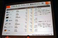 また説明会では、昨年9月に発表された収益改善プランの進捗状況も明かされた。カーAV、カーナビなどの車載機器は、海外では続行、国内では2005年度末で一旦終了する。また、プラズマテレビは今後自社開発、生産は行わないとした。さらにエンタテインメントロボットのAIBO、QRIOの新規開発も中止するという。
