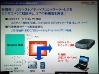 新製品の最大の特長は、新たに搭載した「ダイレクトDVD機能」。新開発“USBホスト/デバイスコントローラーLSI”の搭載により、別売の専用DVDライター「CU-VD10」をUSBケーブルでダイレクトに接続するだけでオリジナルのDVD作成が可能となった。操作は簡単で、1時間の映像(約4GB)を約30分でDVDにライティングすることが可能だ。