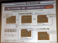 さらに本機は、旅行英会話の音声翻訳機能「Transpeech」を搭載。日本語で話した音声を認識したものを英語に翻訳した結果や、シーンに応じた英会話例文を音声で読み上げる機能を搭載している。