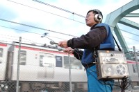 | 往年の名機、ソニーの録音機「デンスケ」を携えて、野外録音にいそしむ本誌カメラマン・川村容一氏。 ※撮影/川村 惇 |