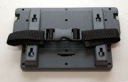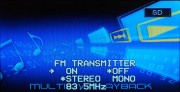 前述したとおり、車載用の装備や機能は非常に充実している。まず、FMトランスミッターを内蔵し、音声をFM電波にして飛ばすことにより、DVDとワンセグの音声をクルマのFMチューナーで受信、再生することが可能。本体にFMトランスミッターの専用操作ボタンが設けられており、ON/OFFやステレオ/モノラルの切り替え、周波数の設定などができる。さらに、カーDCアダプターも付属しており、バッテリー残量を気にせずに使用することが可能。車内で使用する時は、付属のヘッドレストブラケットを利用し、シートの後ろに本機を固定すれば、後席の搭乗者がテレビやDVDを自由に楽しむことができる。
