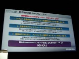 記録用ディスクとしてのHD DVDの特長については、主にHDDとのコンビネーションにおいて、アーカイブ用途の活用が提案された。同社としてはより一層の長時間記録についてはHDDを活用するという、ユーザーの使い方が一般的になるだろうとしている。また追記型のHD DVD-Rについては、安価なディスクを提供できることも有利な点であると指摘する。