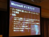 続いて壇上に立ったマイクロソフト(株)Windows本部 ビジネスWindows製品部 シニアプロダクトマネージャーの飯島圭一氏からは、UMPCのアプリケーションのデモと、日本国内における事業戦略説明が行われた。