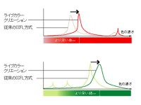 バックライトに広色域バックライトシステム“ライブカラークリエーション”を採用したのが大きな特長。RGBそれぞれの蛍光体を新たに開発し、赤・緑の波長を強めることで色再現力を同社従来CCFL方式液晶テレビ比で約120%に拡大、「鮮やかな真紅や深みのある赤、深緑などのより深い自然の色合いを忠実に再現している」という。