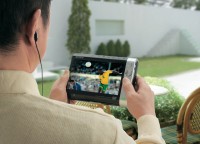 450mW+450mWの高出力スピーカーを装備したスピーカースタンドを付属し、デスクトップシアターとして活用することもできる。スタンドでの充電も可能。光デジタル出力も装備し、AVアンプやホームシアターシステムなどと接続することも可能。