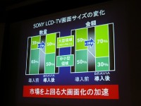 商品力の強化については、BRAVIA導入後に大画面商品の構成比率が数量で50%、金額で70%に達したという。これに伴い「大画面化」へのベクトルで戦略を万端整えることが同社の急務、と説明。現在は46インチまでは液晶、60インチ以降はリアプロでカバーするという戦略を立てているが、「今年のラインナップのイメージは、液晶とリアプロの画面サイズの壁をなくして行き、ビジネスの幅を拡大していく方向だ」とした。また、液晶とリアプロについて、付加価値の高い商品群については積極的にフルHD化を推し進める。