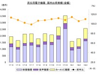 出荷金額は2,549億円、前年比109.3%と8ヶ月連続の前年比増となった。分野別に見ると、映像機器国内出荷金額は、薄型テレビが好調に推移し1,606億円、前年比111.8%と8ヶ月連続のプラス。
