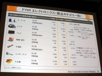 FY05業績の大まかな概要、FY06の見通しを説明したのは執行役 EVP兼CFOの大根田伸行氏。まず同氏は、FY05後半にBRAVIA、HDVカメラ、VAIOなどが好調となったことから「エレクトロニクス事業は回復の見通しが立った」と現状を語った。