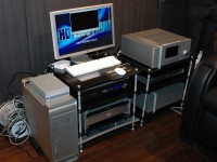 これらのコンテンツはPowerMac G5内に保存されており、HALCROのサラウンドプロセッサー「SSP-100」、5chパワーアンプ「MC50」を介して出力される。スピーカーはJBLの「4428」「4318」及びサブウーファー「HB-5000」だ。モニターはPanasonicの65V型プラズマディスプレイ「65PX500」を使用している。