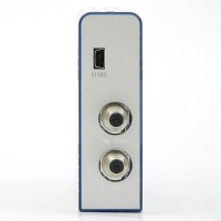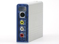 78×25×110mmのコンパクトなテレビチューナーユニット。内蔵チューナーは地上アナログとFMラジオで、USB2.0でPCと接続する。USBバスパワー対応のため、ACアダプターは不要。
