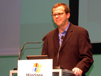 Windows本部 本部長のジェイ・ジェミソン氏は、ブロードバンドやモバイル環境の普及がトップクラスで、米に次ぐ世界第2位の音楽市場を持つ日本は、同社にとって重要な市場であるとし、デジタルメディアを中心とした音楽サービスで成功を収めるためにはパートナーとの協力が必須であると説明。「新しいWindows Media Technology の展開において、マイクロソフトがどんなビジョンを持ち、そのシナリオや賛同するパートナーを早い段階で明らかにすることが大事」と語り、デバイスパートナーとしてアイリバー・ジャパン(株)、(株)NTTドコモ、(株)東芝、クリエイティブメディア(株)、日本ビクター(株)、サービスパートナーとして(株)青山キャピタル、NTTコミュニケーションズ、ナップスタージャパン(株)を紹介した。