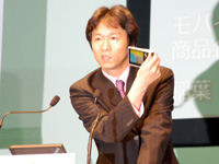 NTTドコモ プロダクト部の板倉氏は、音楽再生機能を充実させた機種として「FOMA F902iS」を紹介。転送スピードの高速化などを例に挙げ、ケータイもデジタルオーディオプレーヤー並の性能を実現しているとアピールした。