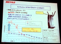 (株)バッファローは、新世代の無線LAN規格「IEEE802.11n」のドラフト版に対応し、実効速度80Mbpsで伝送が可能な「AirStation NFINITI」シリーズ4製品を7月上旬より発売する。本日、東京・有楽町で製品の発表会が開催された。