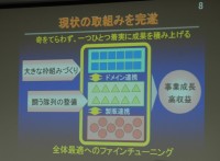 1つ目には「成長に向けたフェーズ・チェンジ」を実行し、これまでの取り組みの成果を着実に刈り取りながら新商品・新事業で売上げを伸ばす体制を確立したいとした。21世紀に世界で闘うための基本的な枠組みづくりは終わったと大坪氏は述べ、「私の役割は、現在の取り組みを最後まで丁寧にやり遂げ、それぞれに成果と高収益を実現させることだ」と語った。