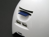 本機は筐体を真中より二つに分けて用いるスピーカー。PCにケーブル1本でつなげばUSBスピーカーとして認識される。片側にはコンパクトフラッシュ/SDカード/メモリースティックの3つのメディアに対応するメモリーカードリーダーを搭載する。またUSB2.0対応の2ポートハブとしても活用できる。
